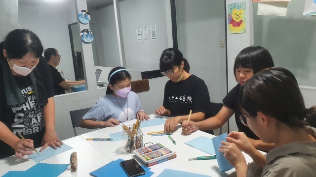 長輩們構想著自己想像的窗,不同的樣式有不同的美,大家都好沉浸在創作裡呀!還有畫到欲罷不能之時呢 : )